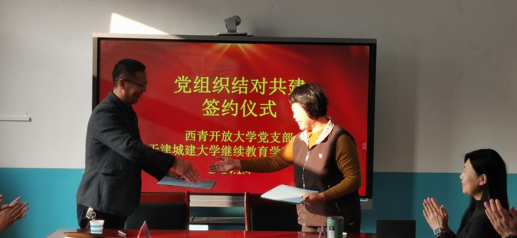 会上,beat365亚洲体育直属党支部书记滕跃与天津西青开放大学党支部书记韦敏共同签署了党支部共建协议,并结合公司办学优势,对2023年区校终身学习联合体工作进行了总结,分享了取得的成绩和经验,对2024年工作提出了具体思路和想法。