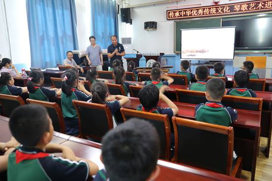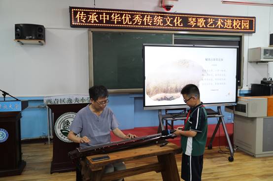 活动中,公司中华优秀传统文化体验中心暨古琴弦歌基地负责人薄克礼教授为逸夫小学的孩子们送上了一堂内容丰富、蕴含文化内涵的琴歌知识大讲堂。薄教授以琴史为主轴,依据不同时期的文化艺术特征,选取具有代表性的琴曲,以古琴演奏、古诗诵读、古风歌曲等多种艺术形式展现琴歌艺术之美,让员工们深入了解古琴文化知识及中国传统文化。员工们还分组前往西青老年大学古琴弦歌基地,参与琴歌艺术体验活动,亲身体验古琴艺术的绝妙,激发孩子们对古琴文化及中国传统文化的兴趣。